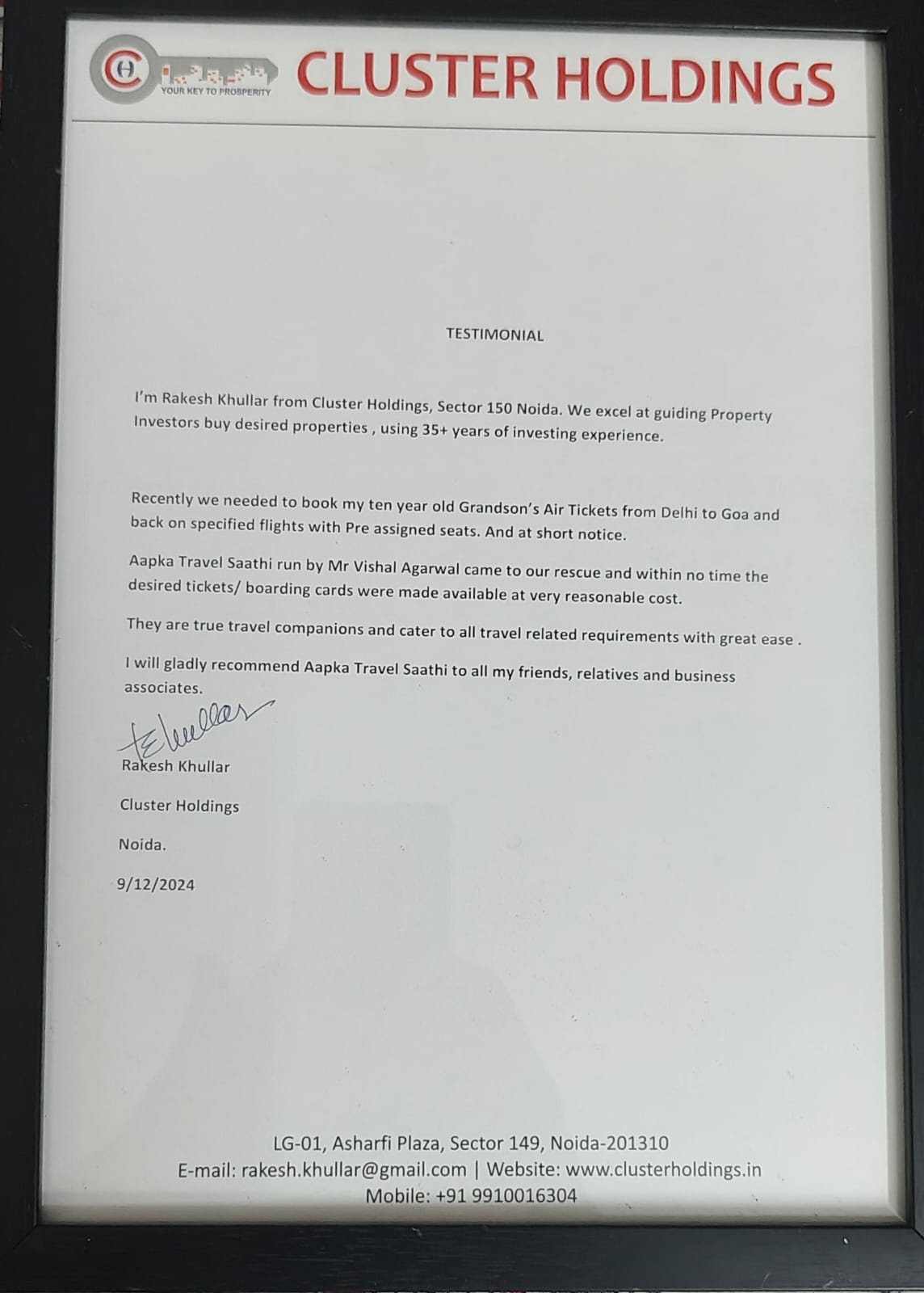 Best in After Sales SupportAfter much deliberation, we zeroed in on M/s Aapka Travel Sathi, Noida, represented by highly knowledgeable and truly professional, Mr Vishal Aggarwal, for fulfilling our requirements. M/s Aapka Travel Sathi fulfilled our requirements exactly as per our needs. We highly recommend the services of M/s Aapka Travel Sathi due to their best rates, high professionalism and dedication as well as the commitment to the satisfaction of their clients.