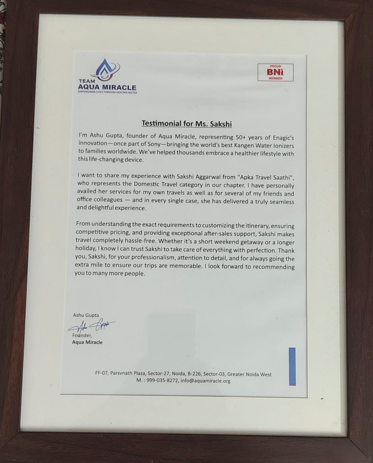 The professionalism and personal touch. I Highly recommended Sakshi Aggarwal from Aapka Travel SathiI’m Ashu Gupta, founder of Aqua Miracle, I have personally availed her services for my own travels as well as for several of my friends and office colleagues — and in every single case, she has delivered a truly seamless and delightful experience. From understanding the exact requirements to customizing the itinerary, ensuring competitive pricing, and providing exceptional after-sales support, Sakshi makes travel completely hassle-free. Whether it’s a short weekend getaway or a longer holiday, I know I can trust Sakshi to take care of everything with perfection. Thank you, Sakshi, for your professionalism, attention to detail, and for always going the extra mile to ensure our trips are memorable. I look forward to recommending you to many more people.